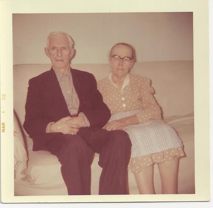 My paternal grand parents, Silas D. Lee and Mary Della Brock Lee sitting on a couch in their home.